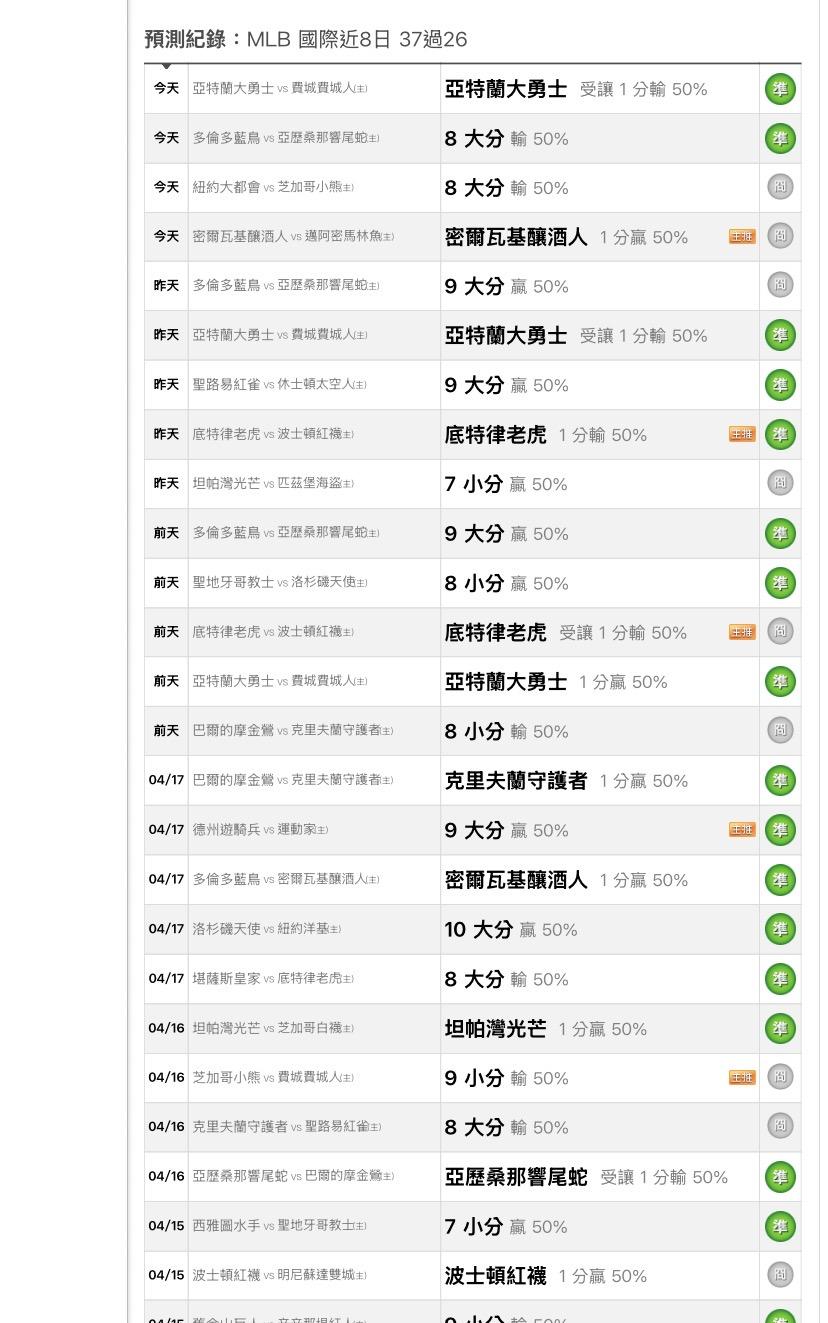 >> 運彩主推連過4天,近11過9,國際盤近八日,37過26