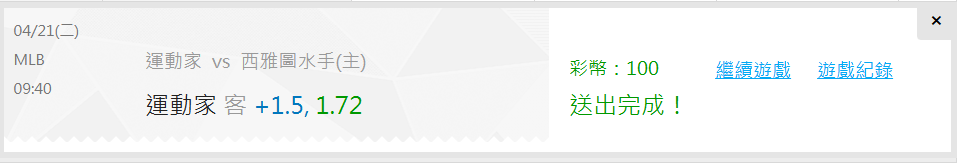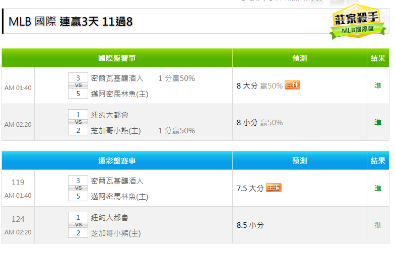MLB >> 國際主推連3 11過8 昨日推2過2