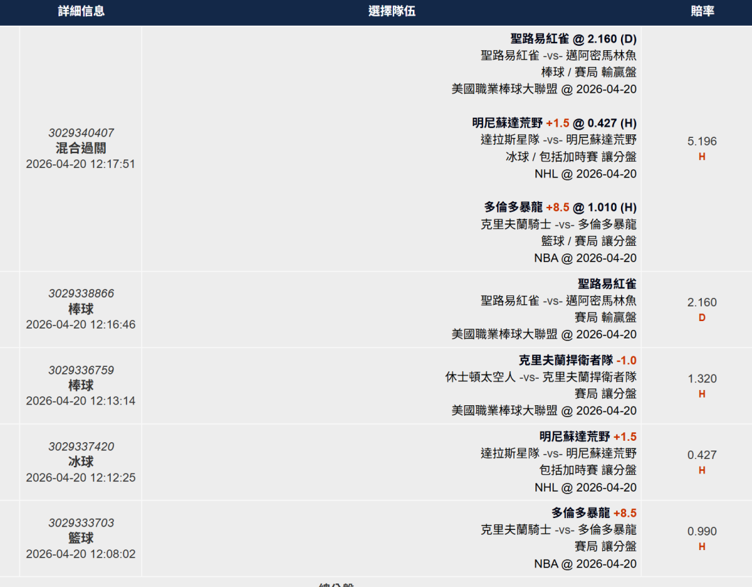 | 運彩盤賽事 |