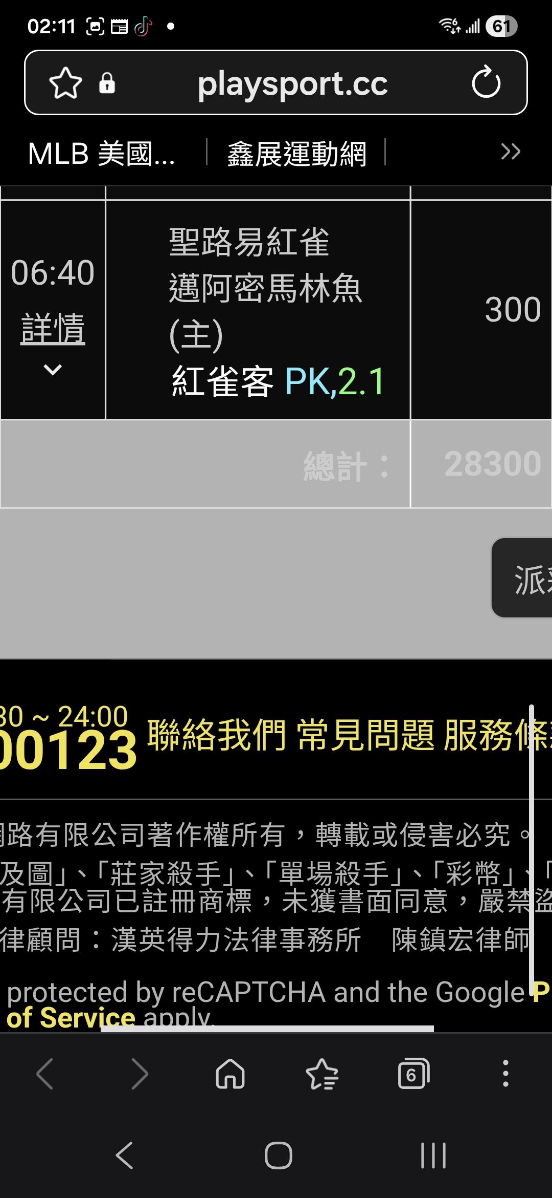 >> 推薦(紅雀/馬林魚)場>> (紅雀)PK勝場。