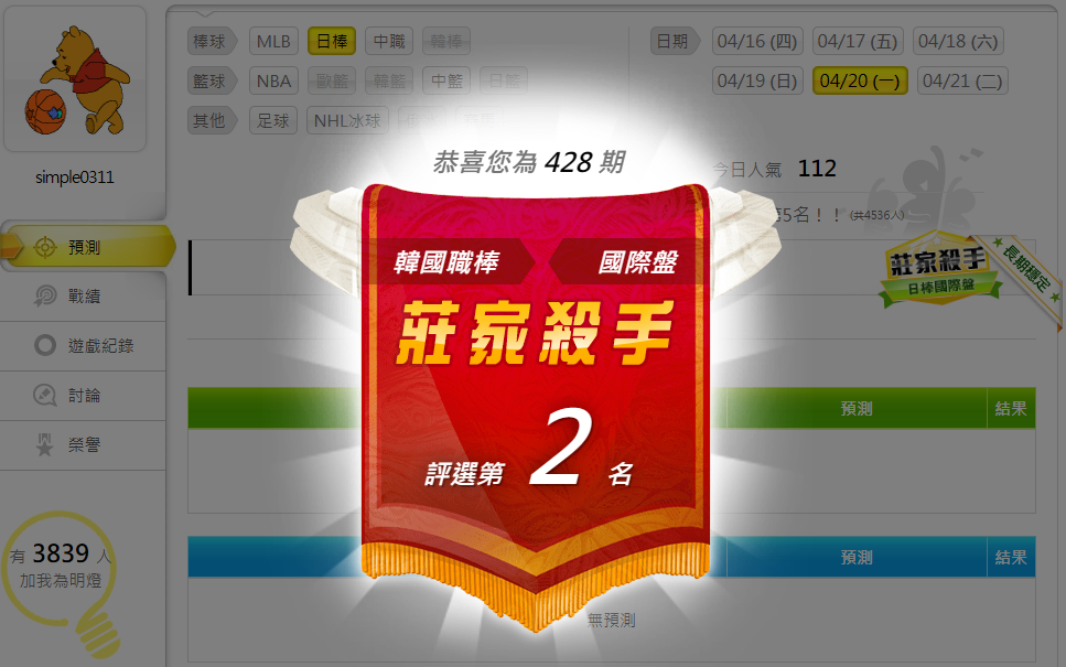 韓國職棒 >> 4/21 KBO推薦【本期國際莊殺第2名】【國際盤主推近7日過6】【免費場歡迎參考】【今日特價】