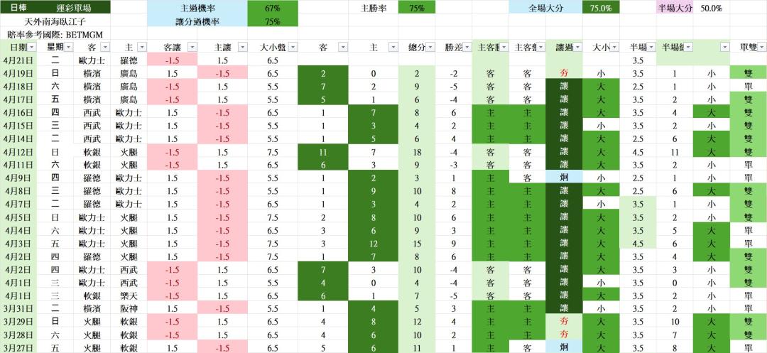 >> 日棒 運彩單場 歐力士 vs 羅德