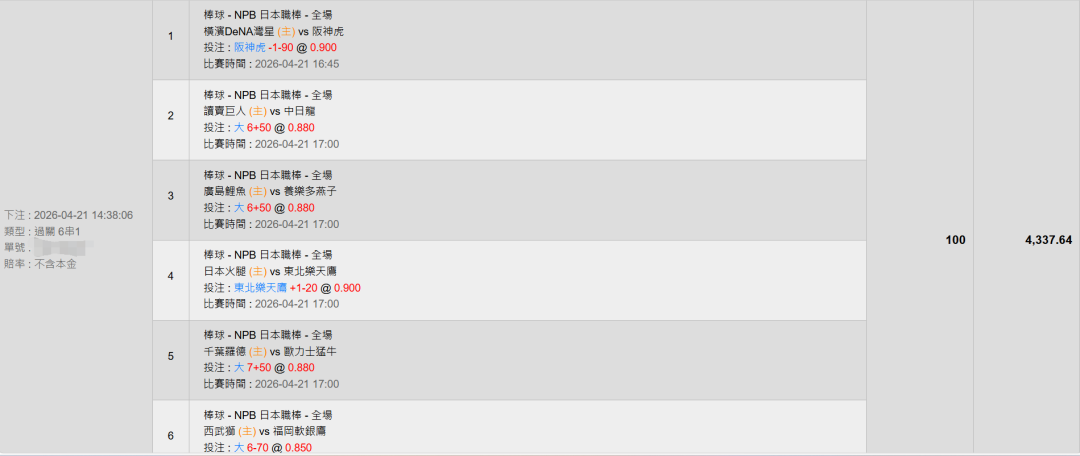 4/21 日本職棒5*1 分享!喜歡的朋友請隨意取用,祝大家都能順利過關!!!