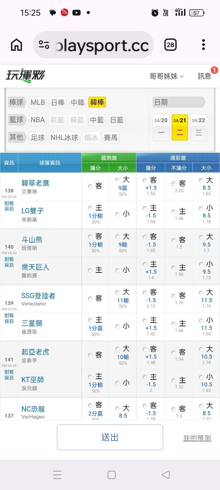 韓國職棒 >> 韓棒盤口