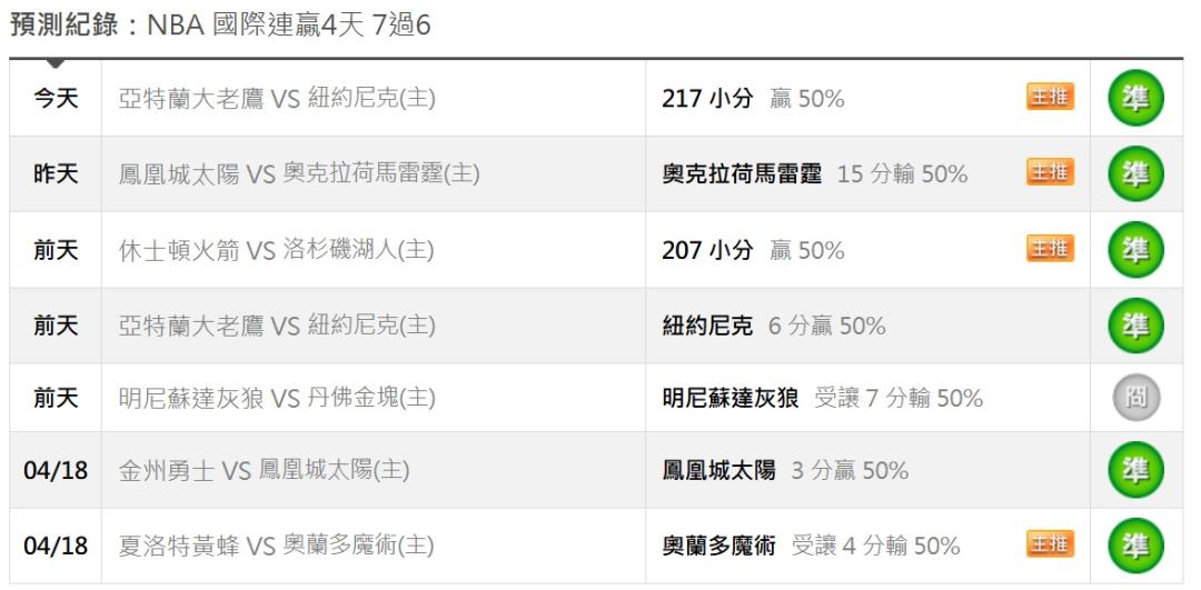 >> 4/22日NBA1場參考(國際 連贏4天 7過6^^)