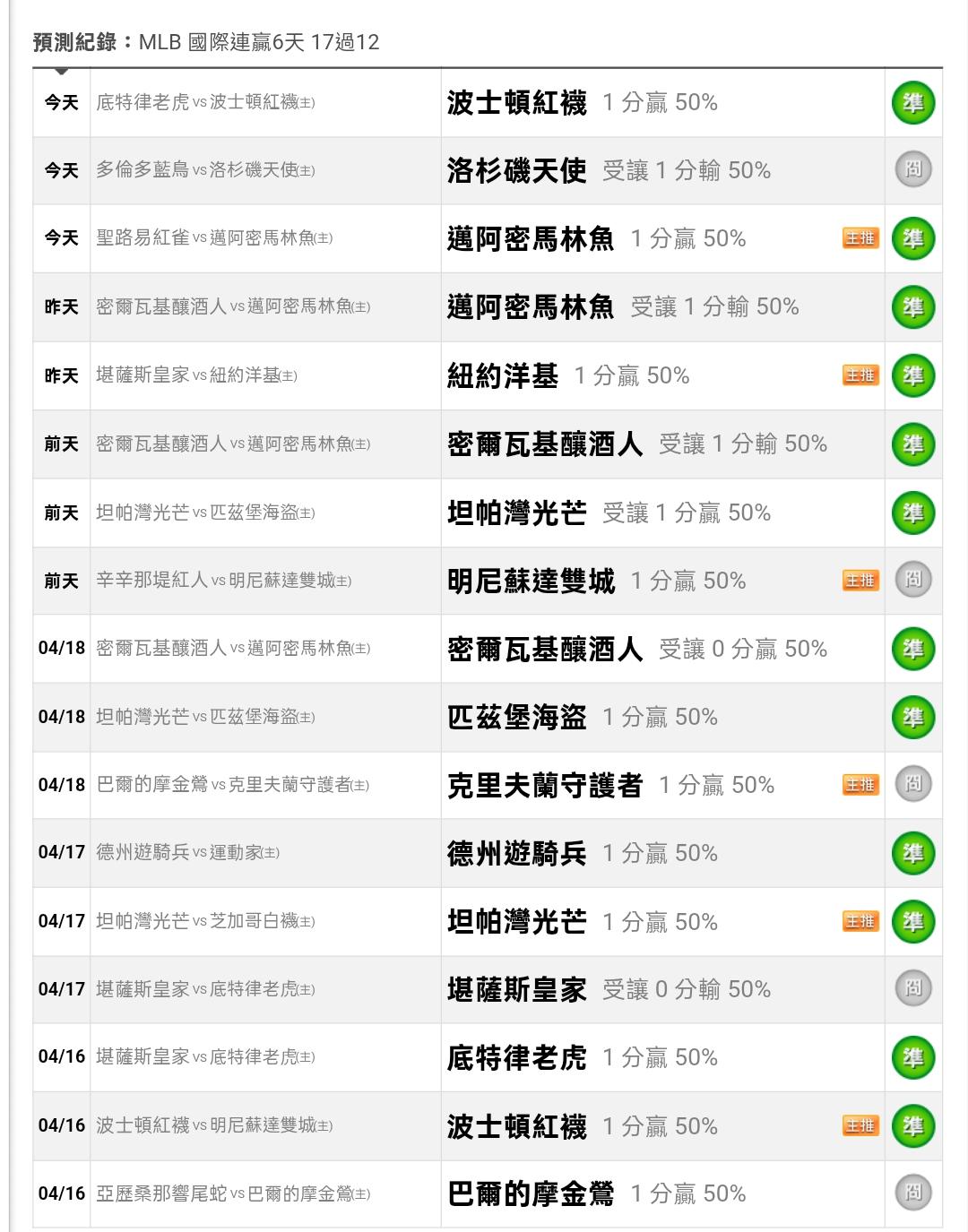 MLB >> MLB 國際連贏6天17過12 🔥決勝主推🔥