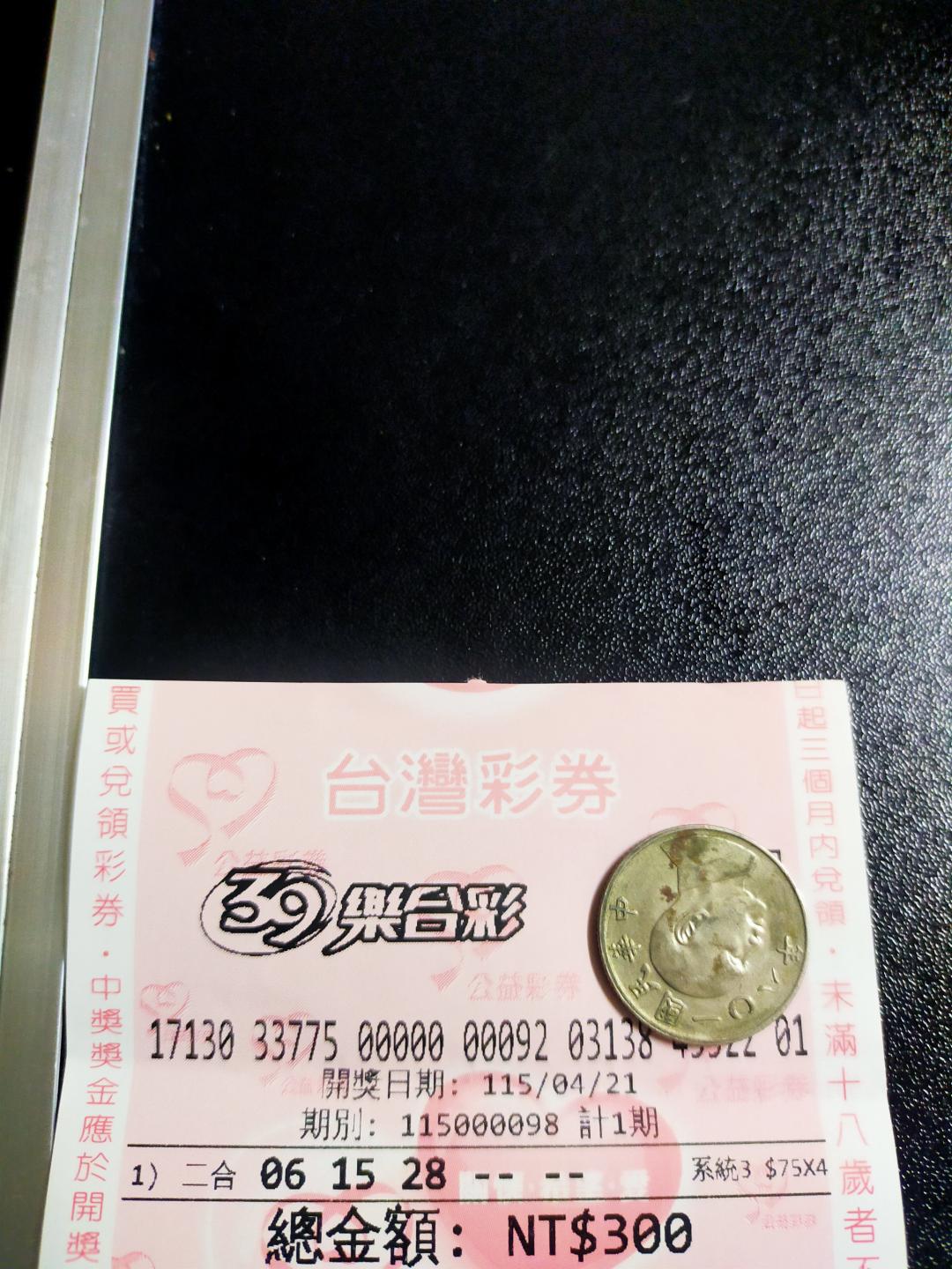 今天中午去擺攤的時候,突然上面給我一個靈感,我就花300去買06-15-28二星在花50元買三星,結果晚上開出來的號碼01-06-14-26-28差一點中三星,不過中2星也有4500,不無小補