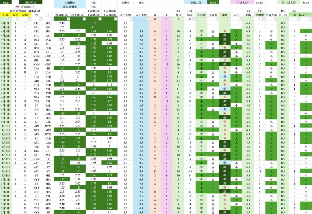 >> 4/22 MLB 運彩單場 BAL vs KC ( ATH vs SEA )