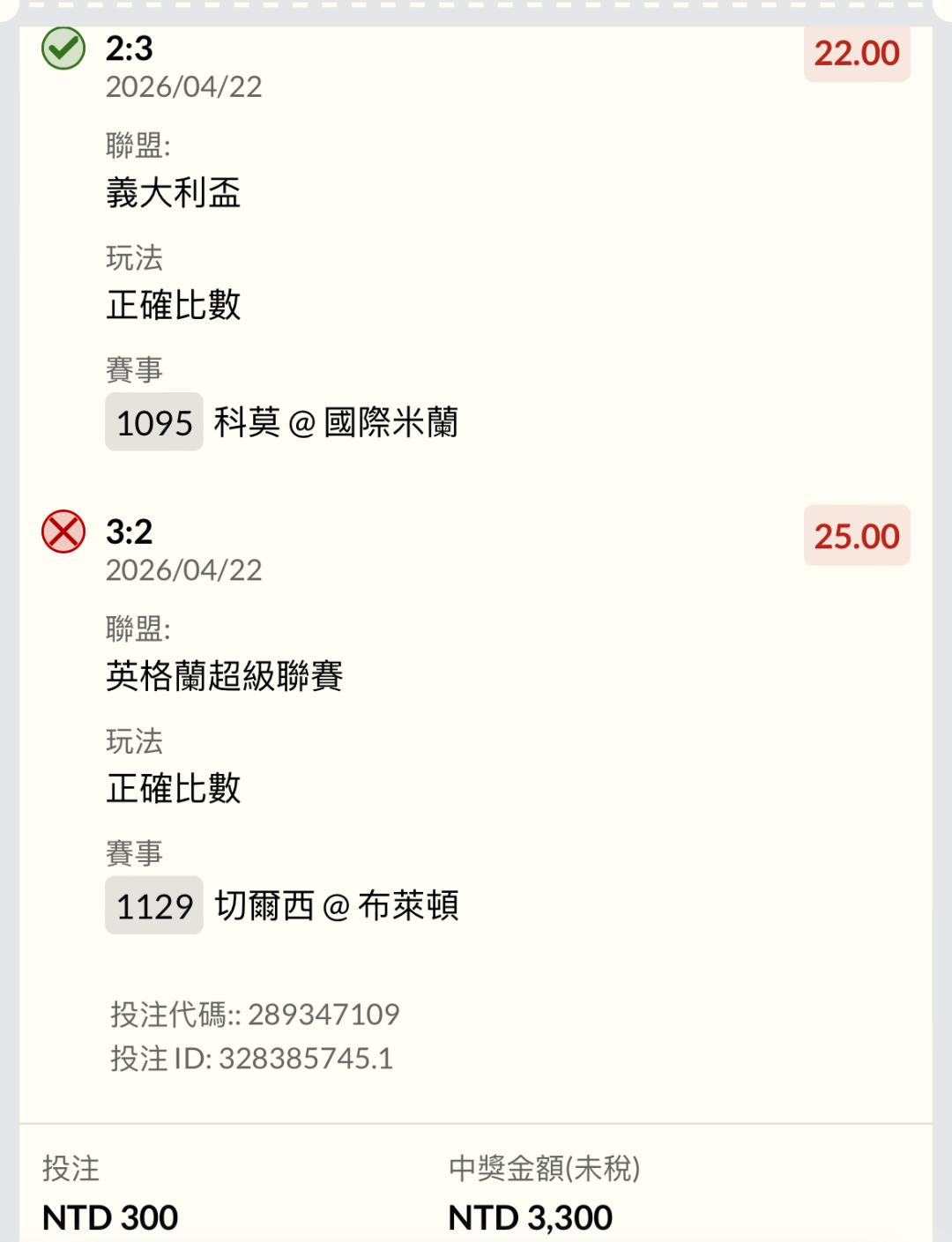 睡前足球單買兩場各一個比分150