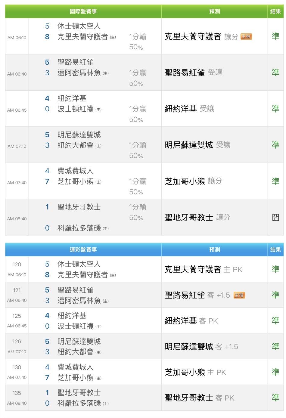今天國際盤與運彩盤整體表現相當穩定,6場賽事成功命中5場,僅差一場全收!📈