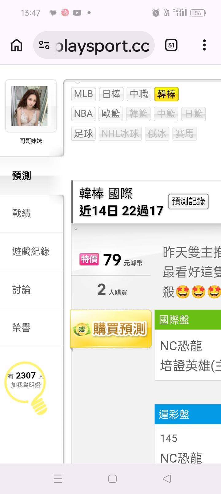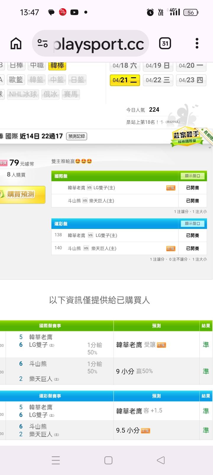 韓國職棒 >> 韓棒昨天二隻輸贏全收錢,今天最看好的就只有一場一隻輸贏就好🤩