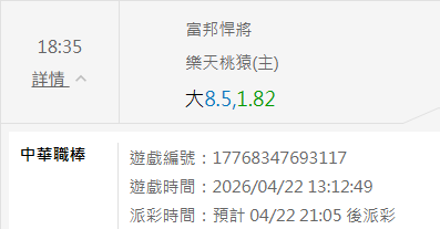 中華職棒 >> 4/22 CPBL推薦【運彩主推信心度高】【小叮嚀有注數推薦】【免費場歡迎參考】