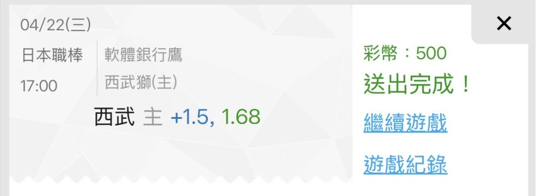 >> 運彩主推連過8,下午NPB免費推薦一場~