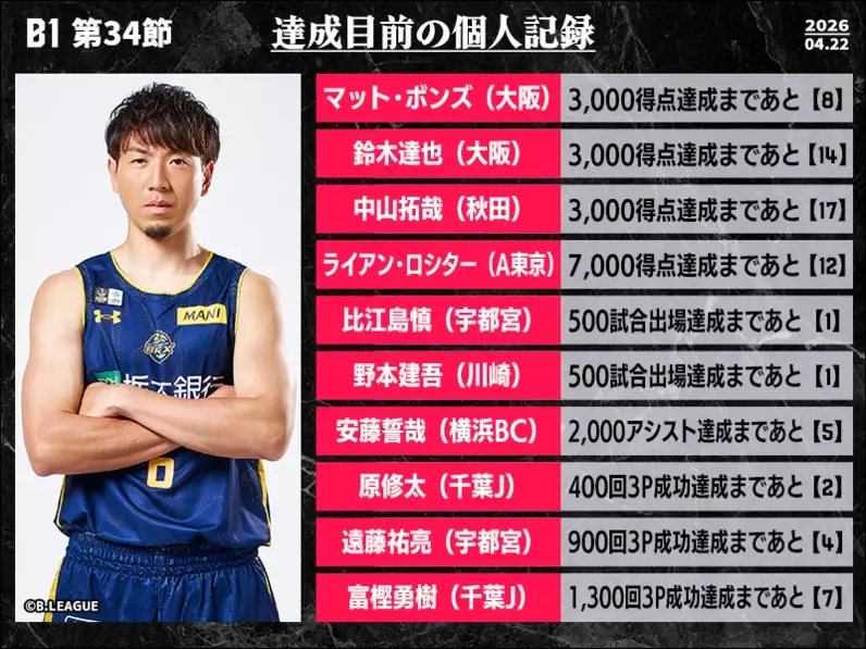 受處分球員:17號 馬庫斯·福斯特(東京阿爾瓦克)場均 +15.6分