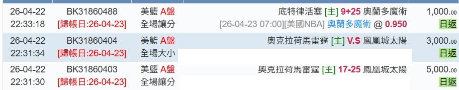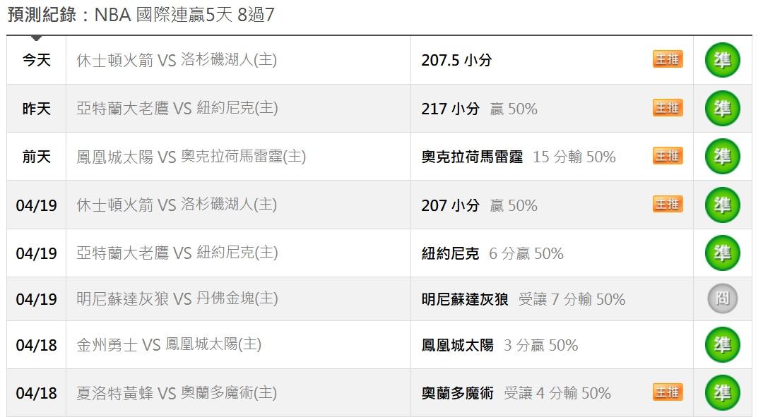 >> 4/23日NBA1場參考(國際 連贏5天 8過7^^)