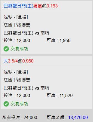 這場是 巴黎聖日耳曼 對上 南特。