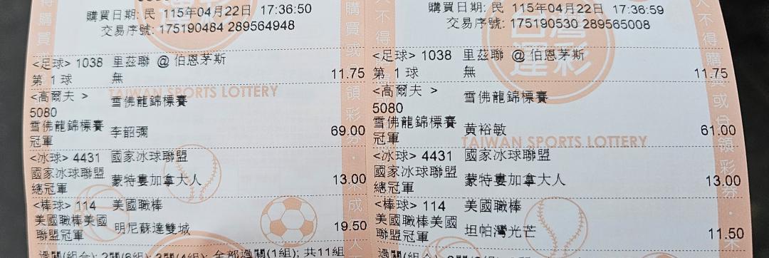 嗯,今天沒無球,中午再串關明天的了