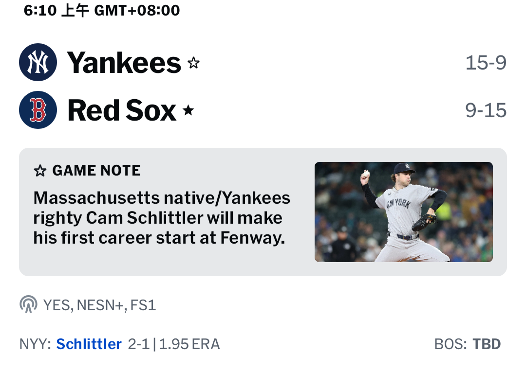 MLB >> 明天洋基未來看版第一次在芬威球場投球