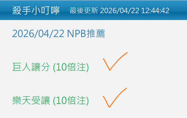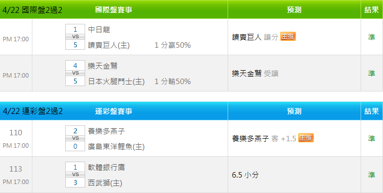 日本職棒 >> 4/23 NPB推薦【國際盤近14日 26過20】【昨日雙盤 4過4】【小叮嚀有注數推薦】