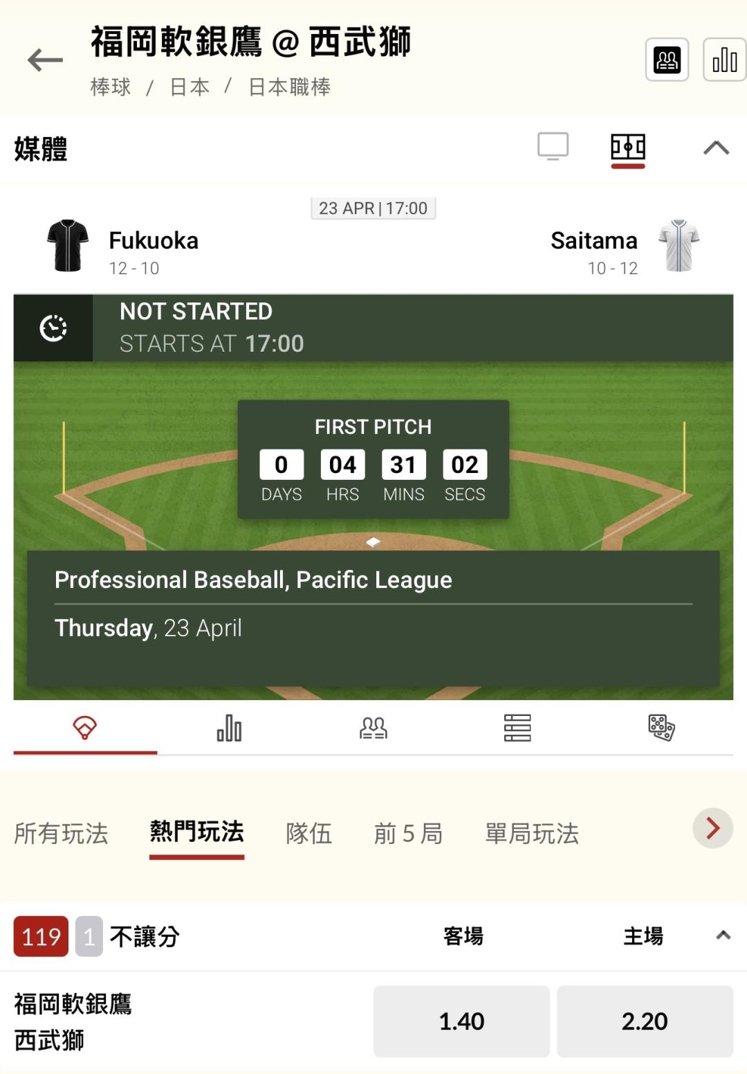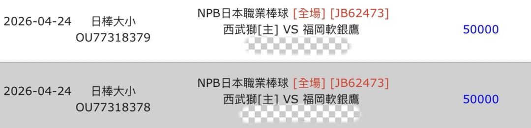 日本職棒 >> 你們最愛的「單場 新台幣 10萬」福岡軟銀鷹 @ 西武獅,運彩主推近12場過10場,豪爽