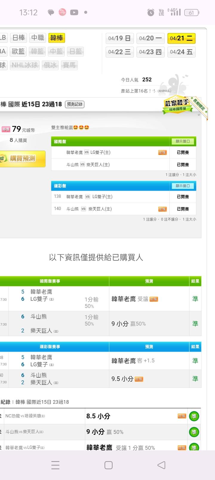 韓國職棒 >> 韓棒又贏錢,贏錢,贏錢,贏錢,贏錢,今天要殺豬的來🤩