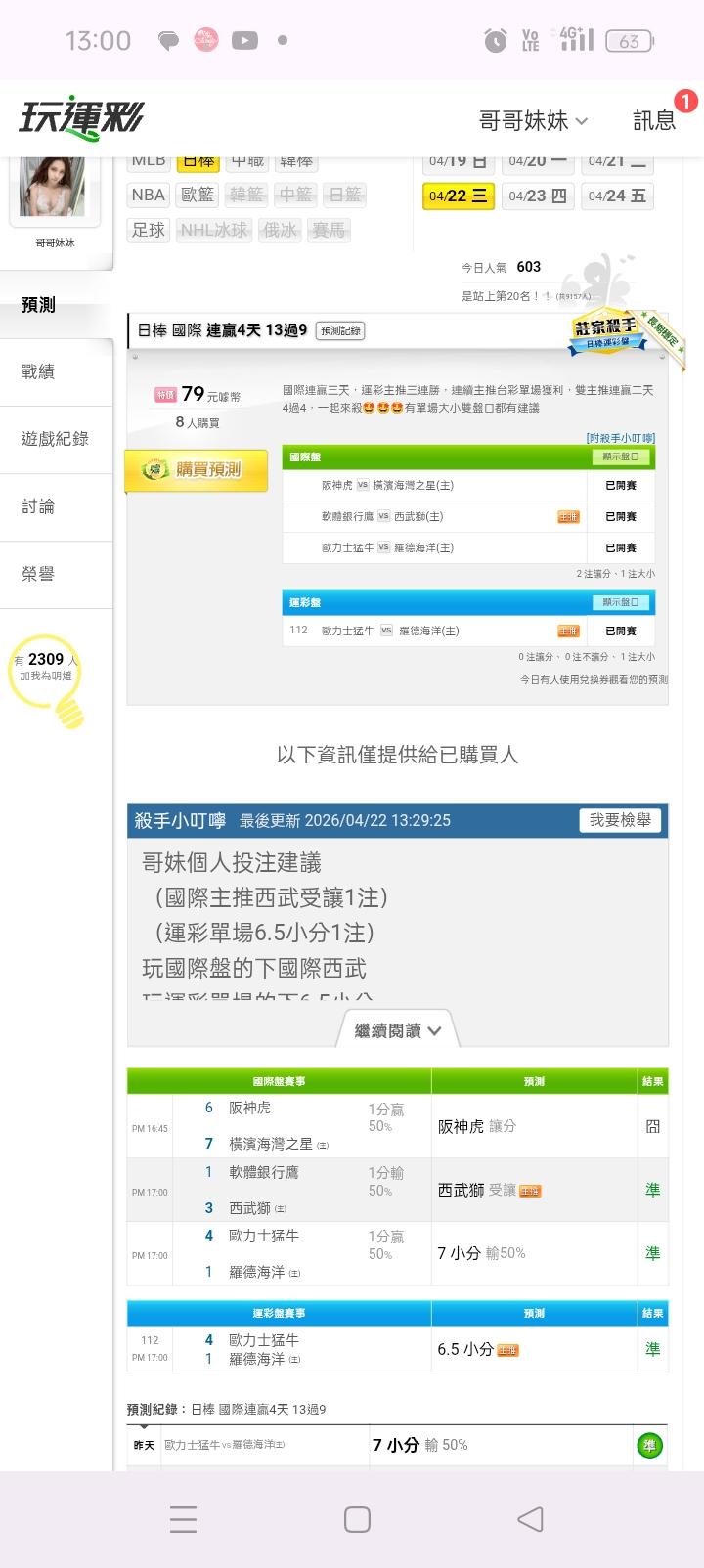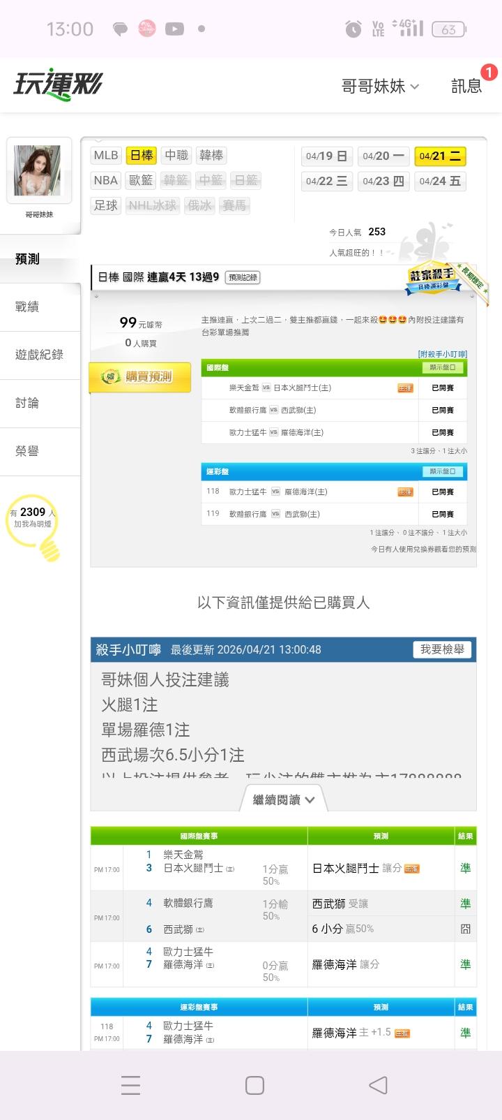 日本職棒 >> 日棒又贏錢錢錢錢錢,雙主推三天6過6全贏台彩單場軟銀vs西武,雙主輸贏🤩