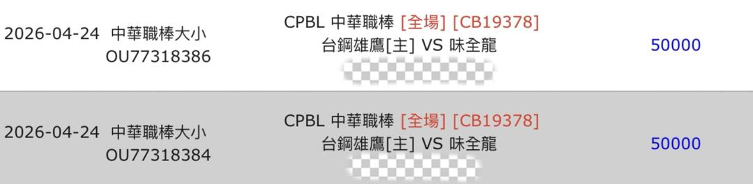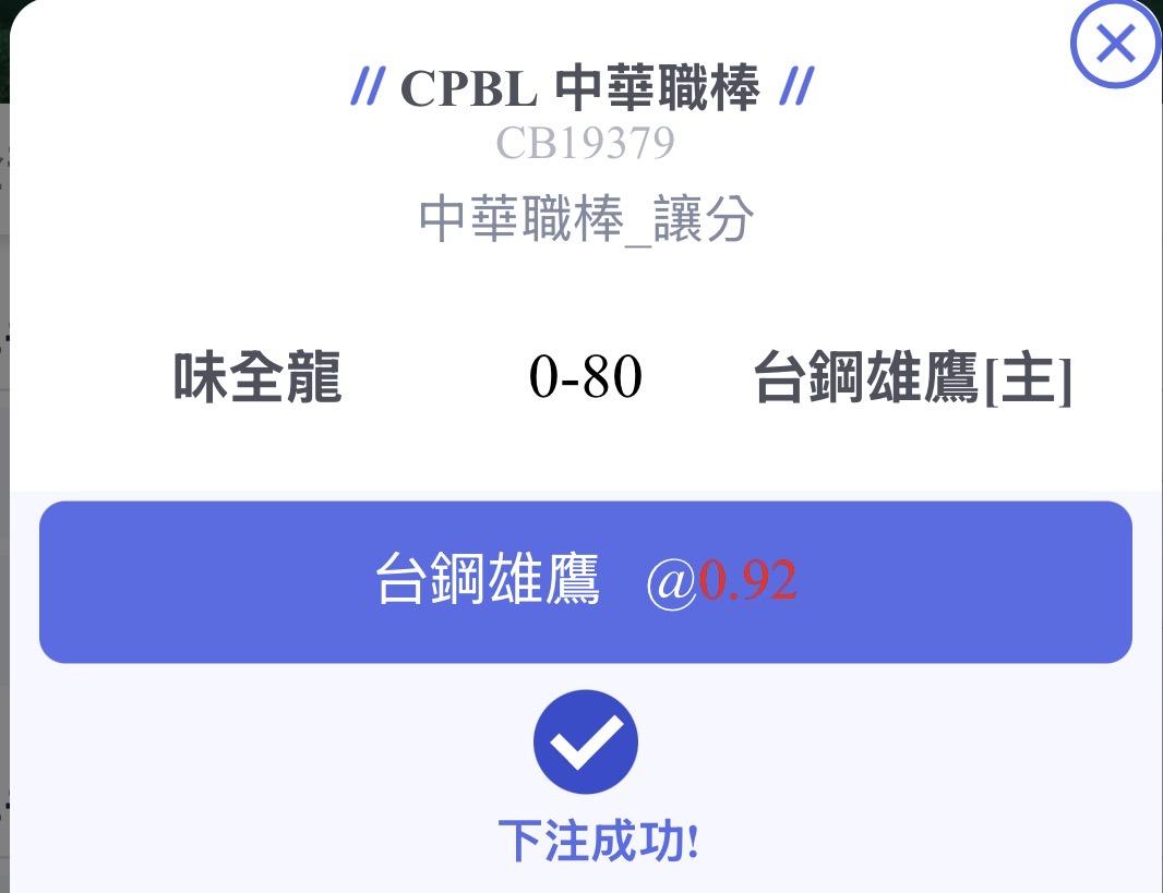 中華職棒 >> 中華職棒「釘孤枝 新台幣 10萬」味全龍 VS 台鋼雄鷹,上一個比賽日收釘孤枝10萬,豪爽