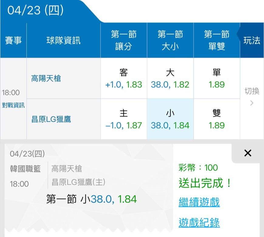 韓國職籃 >> 4/23 韓藍 信心雙主推!免費場參考(今日特價🉐)