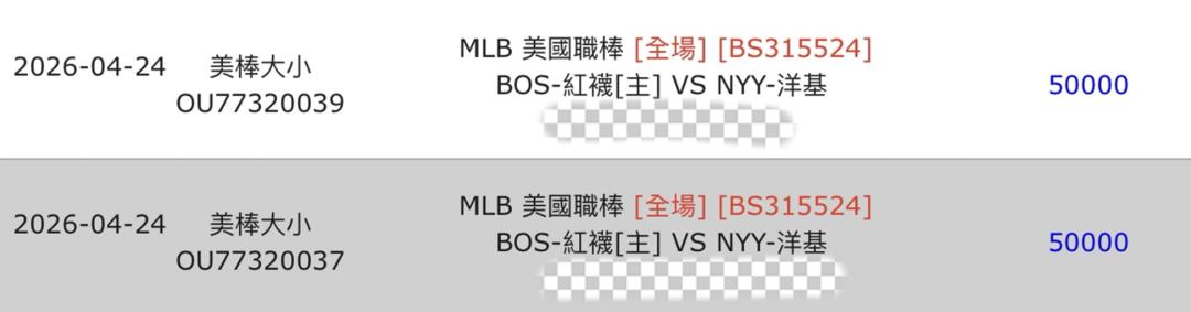MLB >> 世仇之戰「釘孤枝 新台幣 10萬」紐約洋基 VS 波士頓紅襪,運彩盤連贏2天6過6全贏贏贏贏贏贏