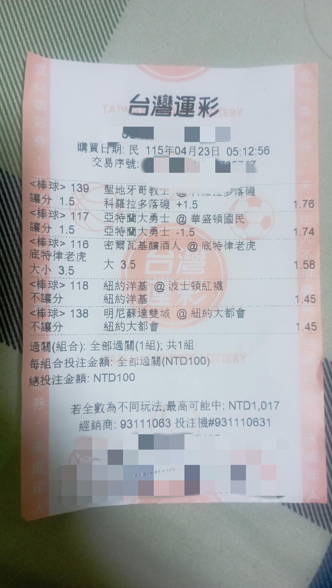 美棒一口氣過五關,雖然都不是高賠但是還算不錯了,假如這組串是玩地下,結果又會是如何的呢,還有今天我的NBA戰績算是接受