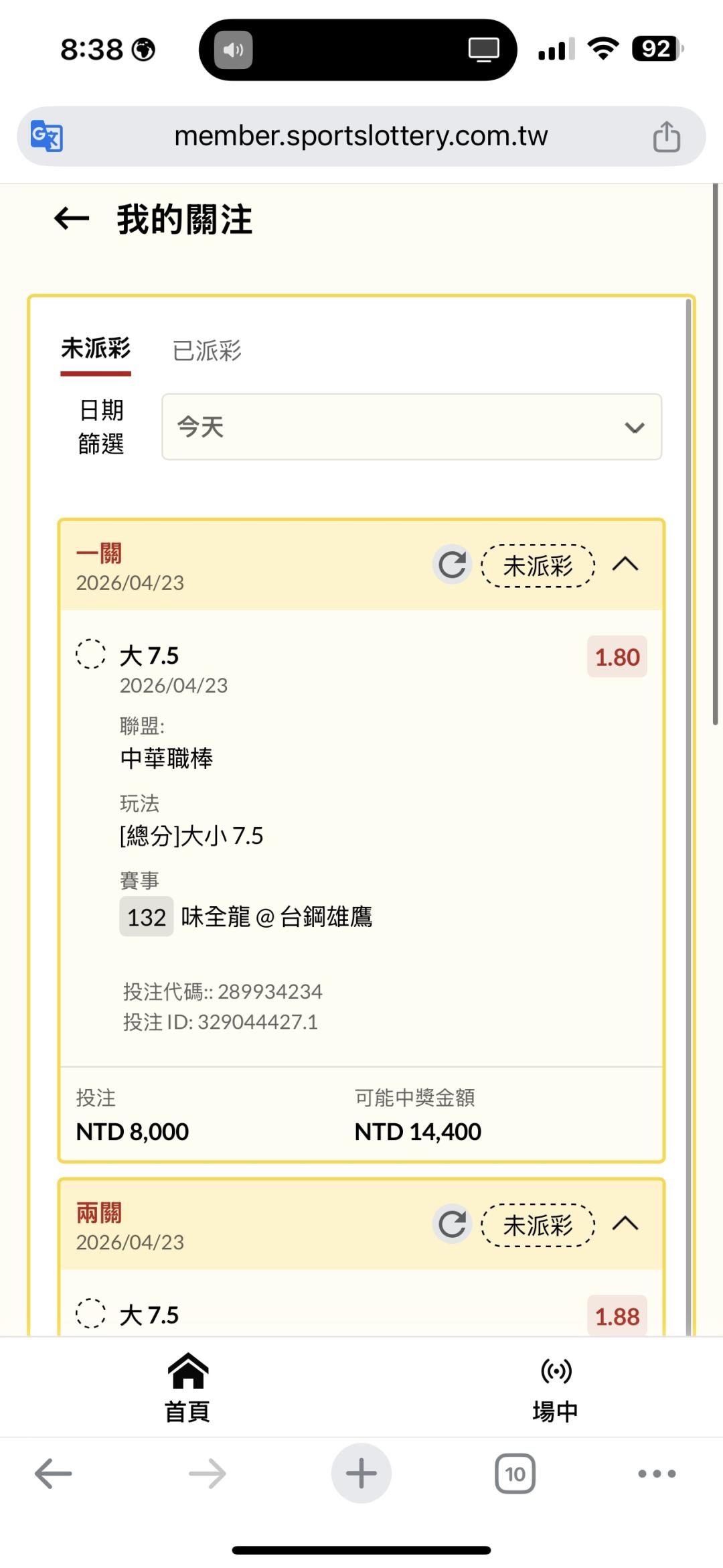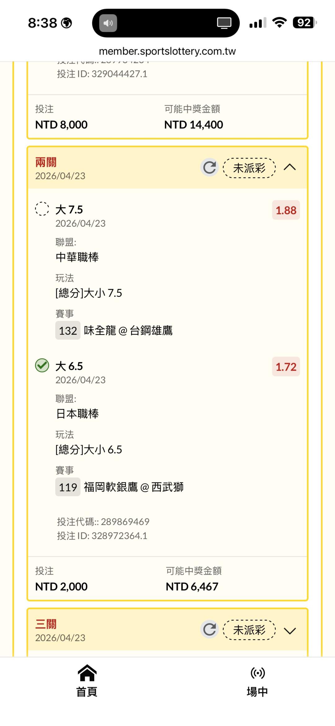 >> 聽牌了 再來兩球