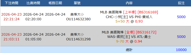這兩天MLB 輸蠻多