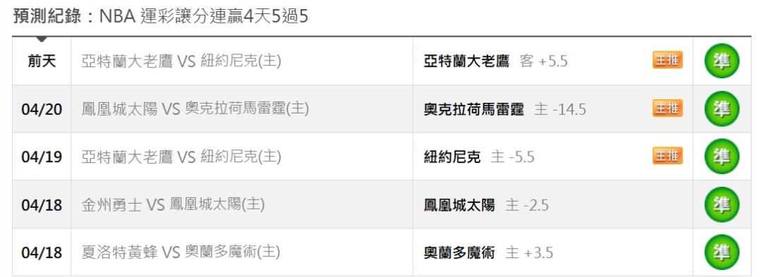 運彩讓分 連贏4天5過5