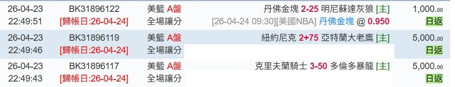 >> 4/24日NBA1場參考(運彩讓分 連贏4天5過5^^)