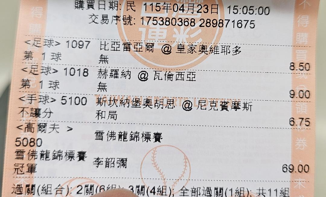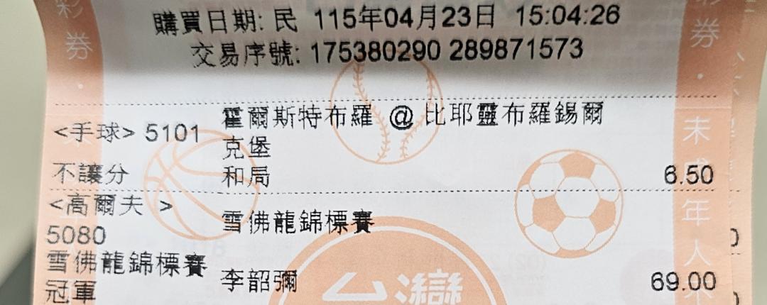 參考,丹麥手球還有高爾夫球已經開賽不能串。足球2場無球參考