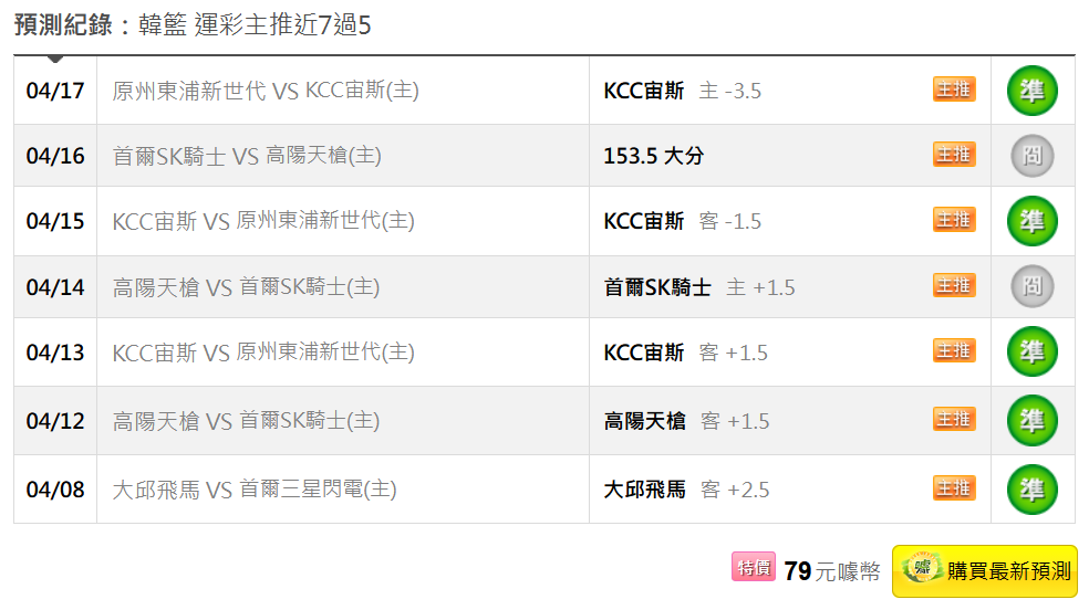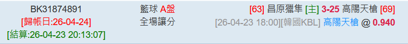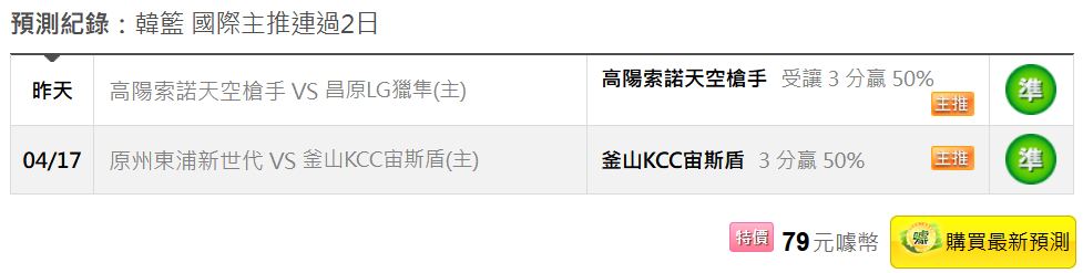 韓國職籃 >> 4/24【國際主推連過2天】【3月獲利第7名】初盤分享+第一節受讓推薦!