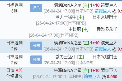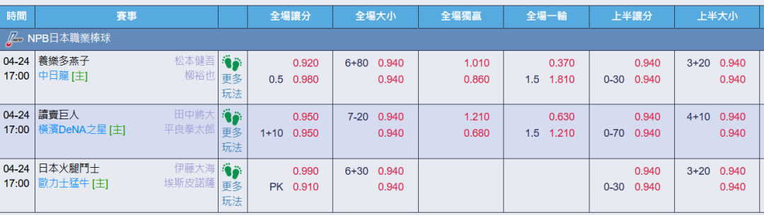 日本職棒 >> 4/24【推薦連過3天】初盤分享+星期五受讓版路推薦!