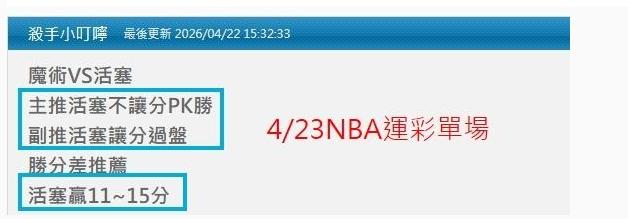 NBA >> 4/25NBA運彩主推連過3天 今天小叮嚀推薦單場:暴龍受讓+暴龍PK都抓到 有明天3場季後賽推薦