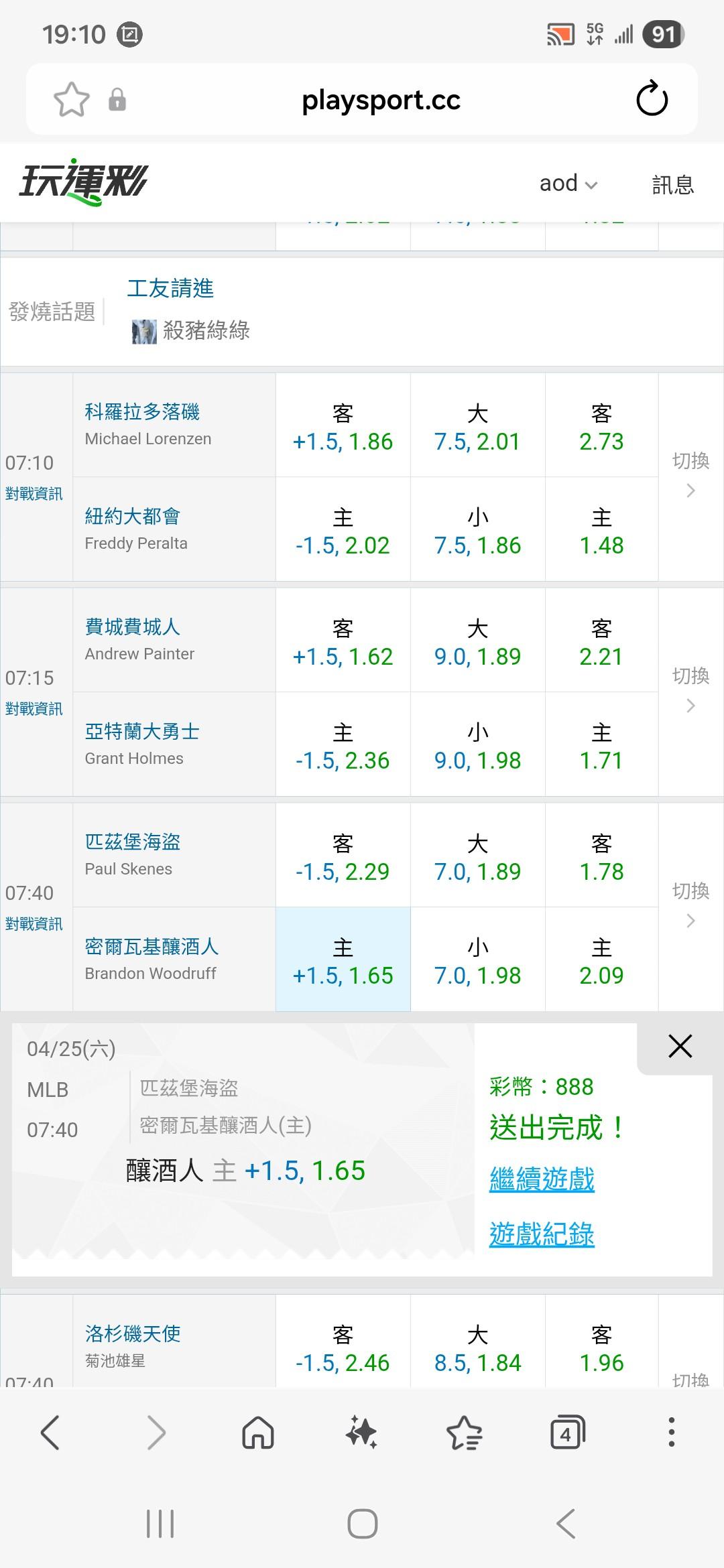 MLB >> 推一場免費,一起綠綠綠發發發旺旺旺
