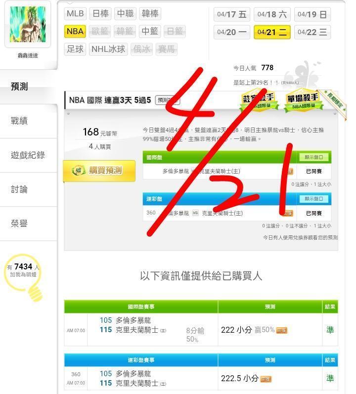 >> ⭐⭐雙盤近6天贏5天16過14,明日主推台彩單場湖人vs火箭,信心主推99%貓場50倍注