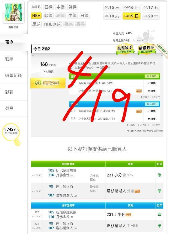 雙盤近6天贏5天16過14,明日主推台彩單場湖人vs火箭,信心主推99%貓場50倍注,一次綠回來
