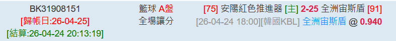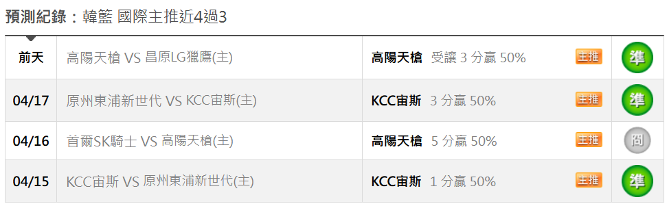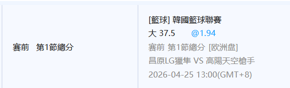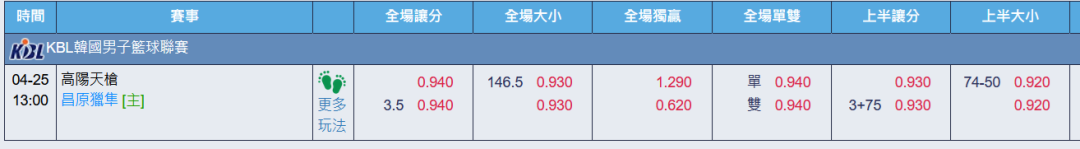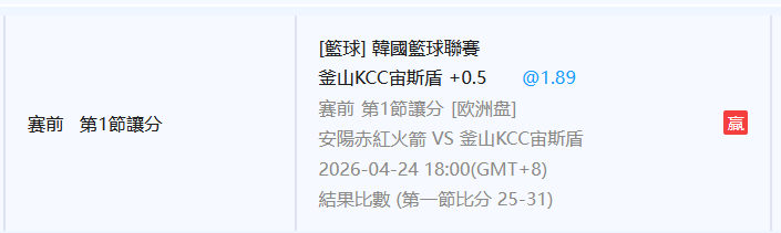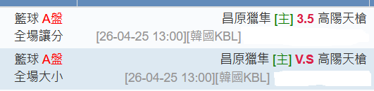 韓國職籃 >> 4/25【國際讓分連贏3天3過3】【 3月獲利第7名】初盤分享+第一節大分推薦!