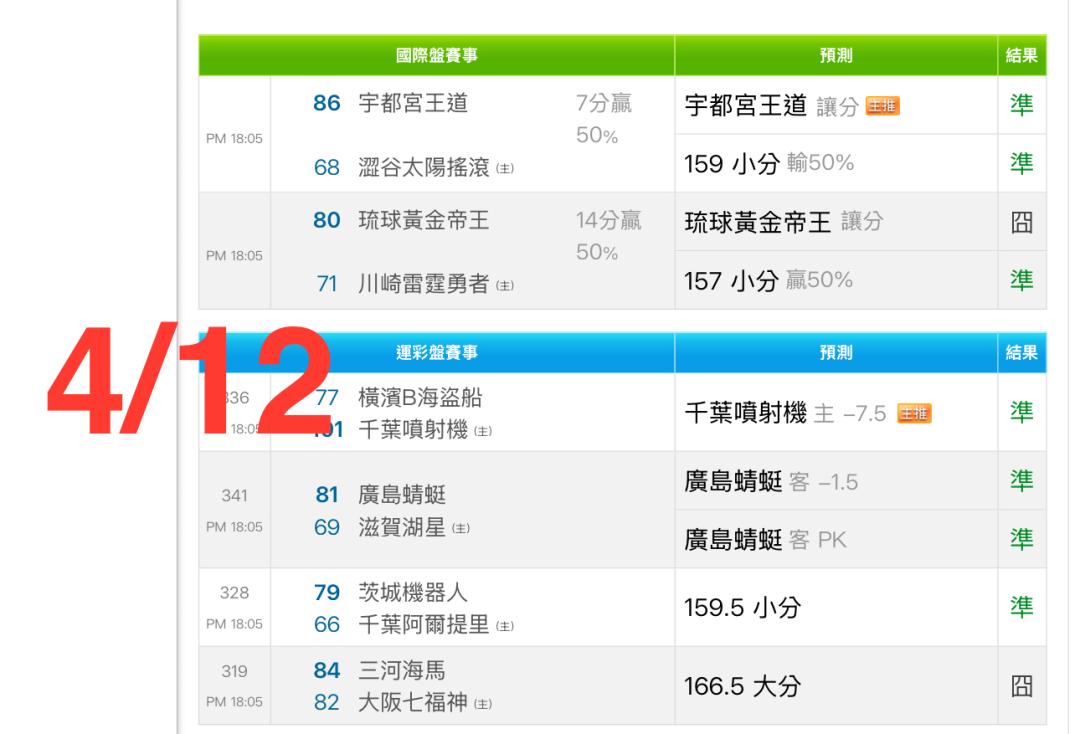 日本職籃 >> 4/25🏀🌟🎯《日籃推薦》日籃 運彩主推連過3天