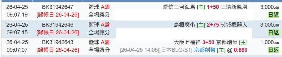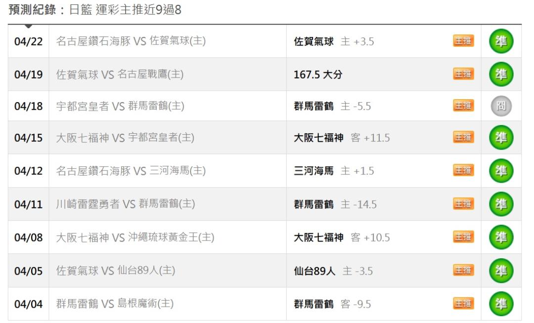 >> 4/25日籃分享(週三3支全過,運彩 主推近9過8^^)