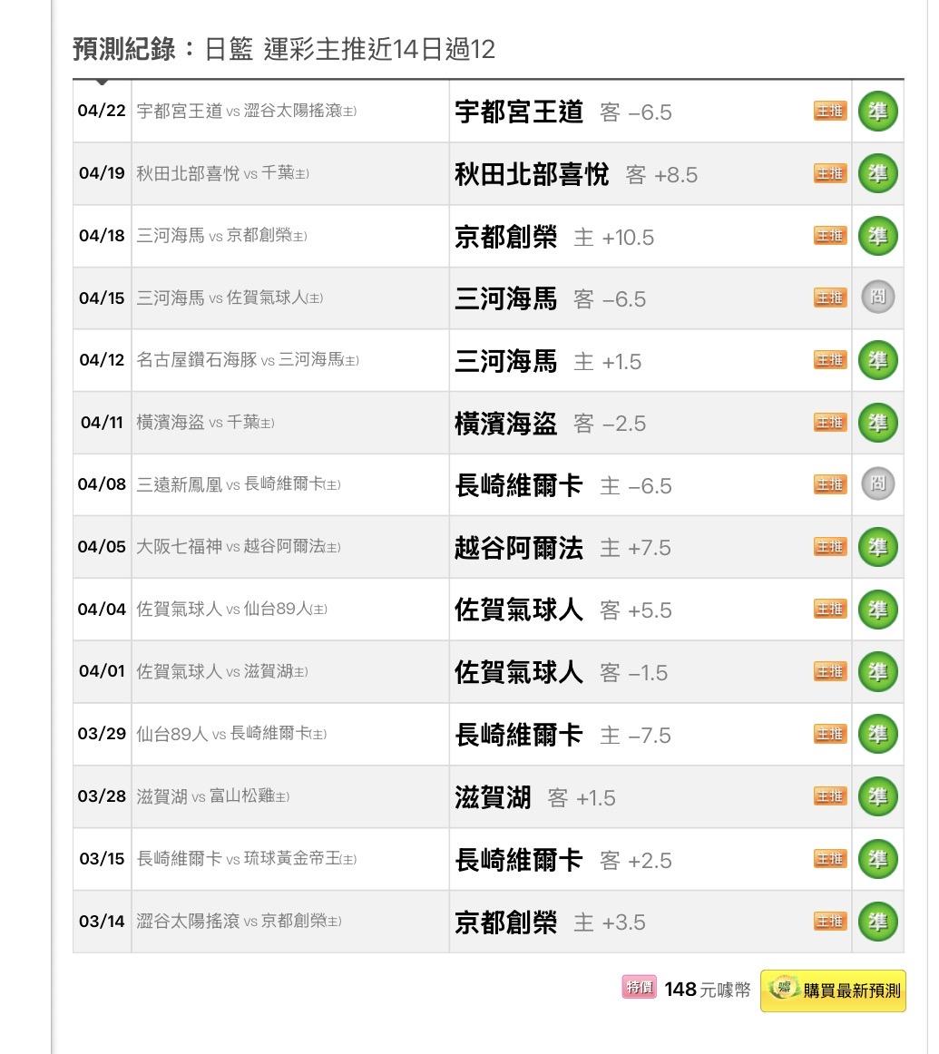 日本職籃 >> 4/25日籃國際近12日34過26 日籃運彩主推近14日過12 本期最後一次特價 歡迎參考合牌