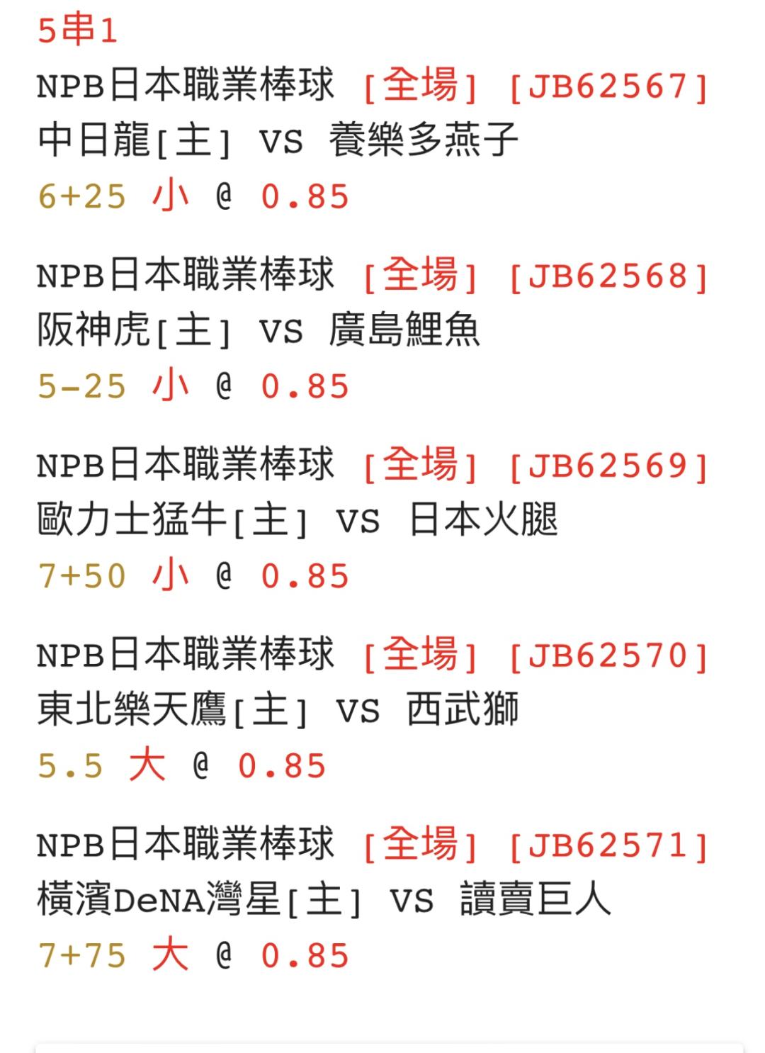 昨天日棒全轟,今天一樣分享5串1,喜歡可以自己合牌,祝大家天天發財