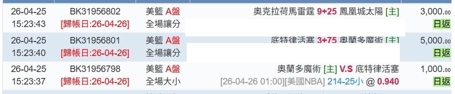 >> 4/26日NBA1場參考(國際 主推近8日過6^^)