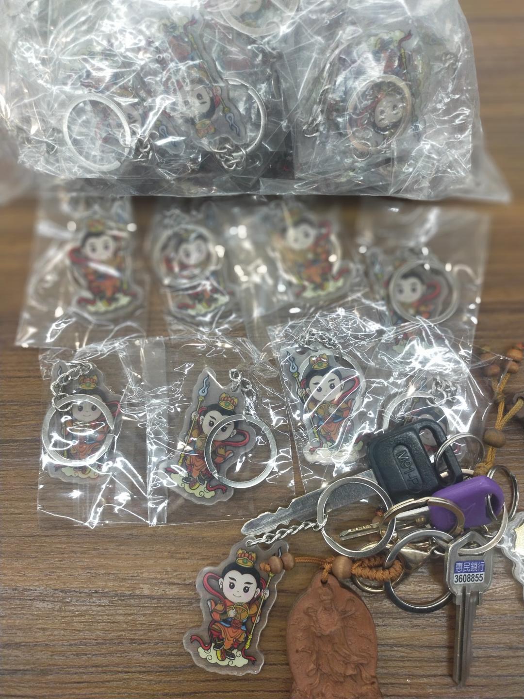 今天下班回家後,洗完澡後,先去拿之前訂制的三太子哪吒鑰匙圈,目前有100個,一個50塊,如果一次買6個只要250元,另外這個玉龜富甲天下,一個300元,如果一次買2個500元,最後就是白沙屯的永保安康吊飾,1個100元,這一些商品,放假有空擺攤的時候又是新的元素,而且還真的蠻好看的