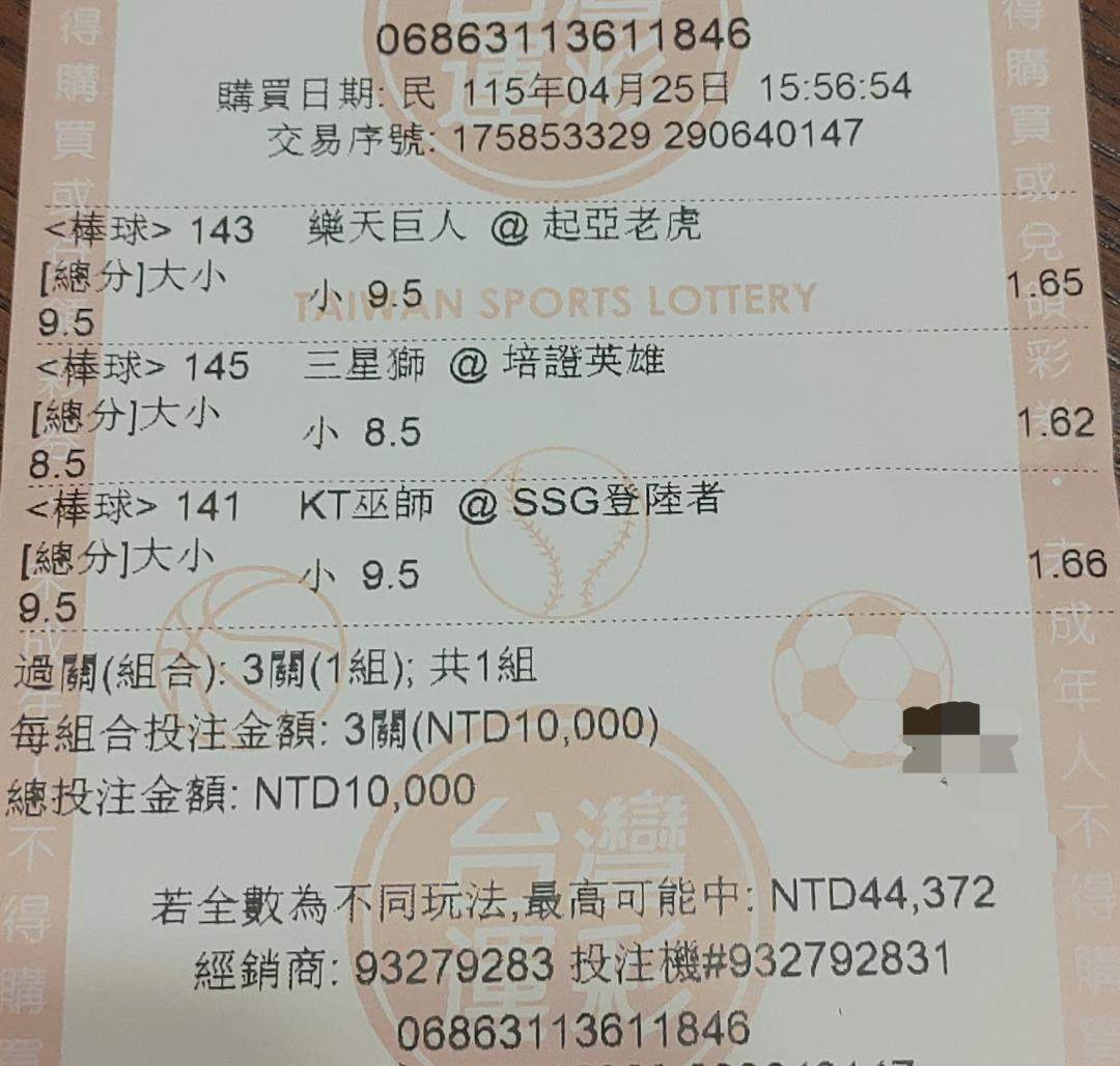 >> 4/25 韓棒三串一 又過了!!