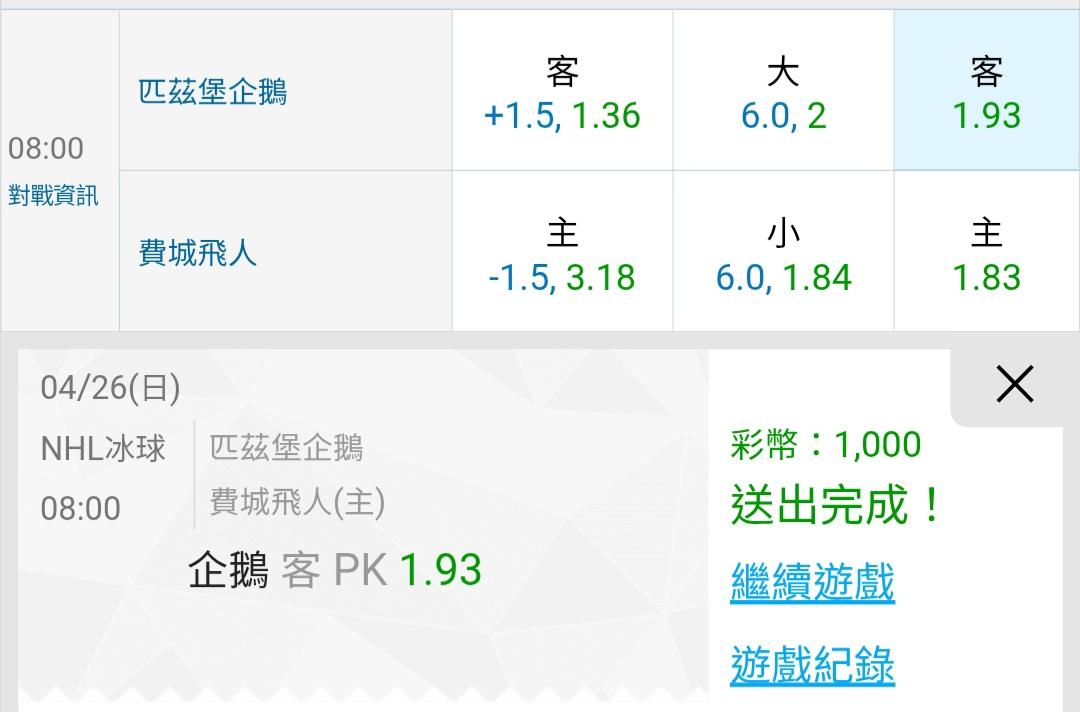 NHL冰球 >> 今天4過4全壘打【主推41過36】